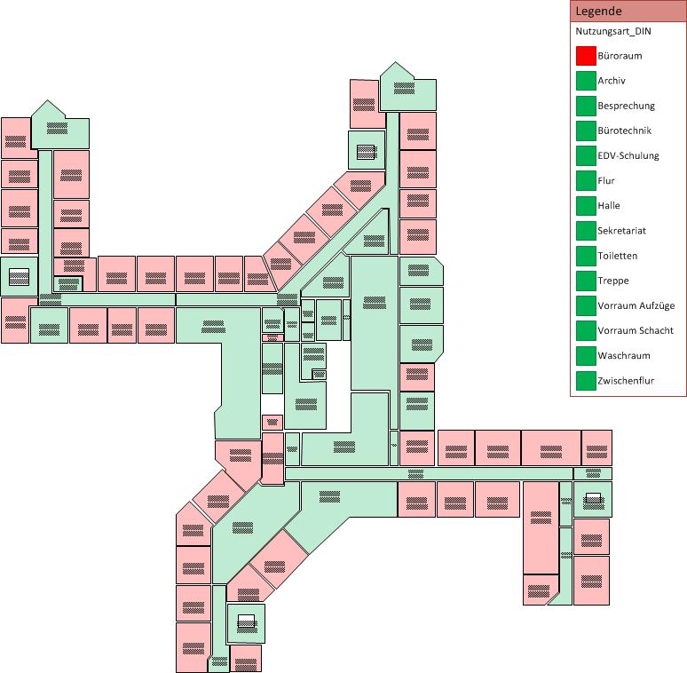 Auswertung der Räume nach Nutzungsart Büroarbeit und andere